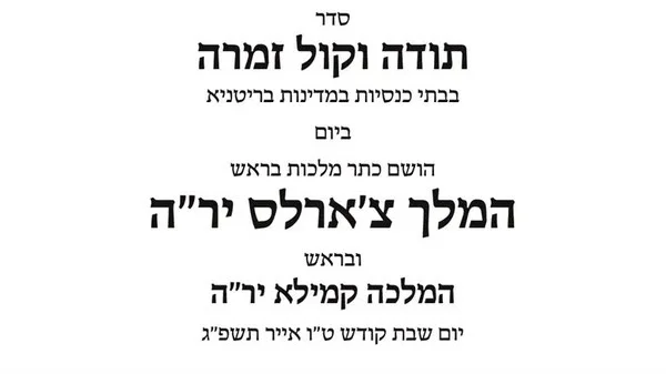 מדובר במנהג מקובל אצל יהודי בריטניה לכונן נוסח תפילה מיוחד לרגל הכתרת המלך או המלכה וגם בהכתרת המלכה המנוחה אליזבת' הוצאה חוברת מיוחדת ובה תפילות להצלחתה.