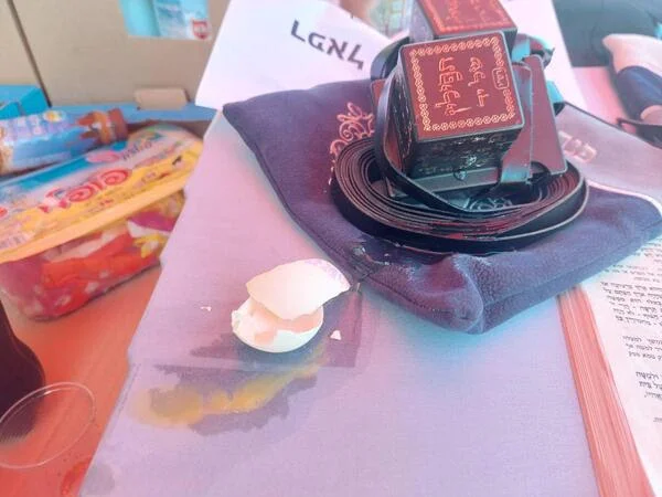 תקרית מזעזעת ביום שישי בעיר נס ציונה, שם השליך אלמוני מרכב חולף ביצים לעבר דוכן תפילין של בחורי ישיבה מחסידות חב"ד.