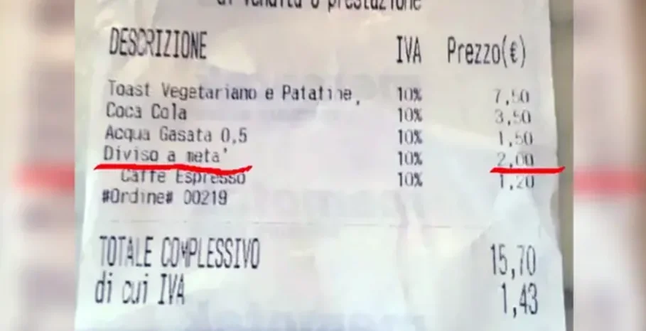 זה בדיוק מה שקרה ביוני השנה לתייר בריטי שנכנס לבר יוקרתי באגם קומו המפורסם. הוא ובת זוגו הזמינו כריך שהכינוי שלו הוא 'מחולק לשניים'. הם אכלו את הכריך ואת מה שהזמינו, וכששילמו על הארוחה ה'דשנה', גילו כי שילמו 2 יורו יותר, מסיבה הזויה: "חתכנו לכם את הסנדוויץ' לשניים, וזה עולה כסף", אמר המלצר.