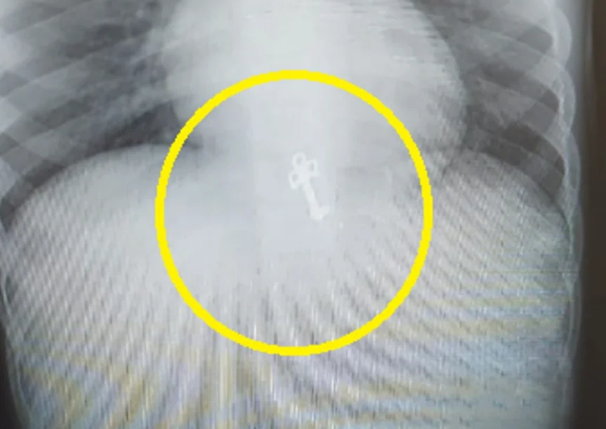 הילד הובהל לחדר המיון של 'יד שרה', לאחר שהאחות אמרה להוריה כי הוא בלע את המפתח שלה, והילד עבר צילום חזה וקיבה שהוכיח כי אכן האבדה נמצאה בדיוק שם.