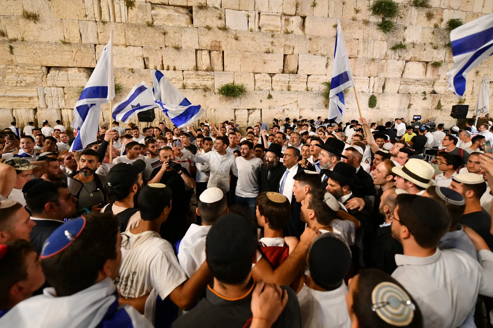 עם תחילת התפילה נפרס ברחבת הכותל העליונה ע"י תלמידי המכינות הקדם צבאיות- דגל ישראל, הגדול ביותר שנפרס אי פעם בירושלים בגודל 1,000 מ"ר בסימן "שישו את ירושלים גילו בה כל אוהביה"- הדגל הענק מסמל גם בשנה זו את יהודי התפוצות שנמצאים איתנו בשידור חי מרחוק ועוד לא עלה בידם לאור מגבלות הקורונה בארצם להגיע לרחבת הכותל כמדי שנה ביום חגה של ירושלים.