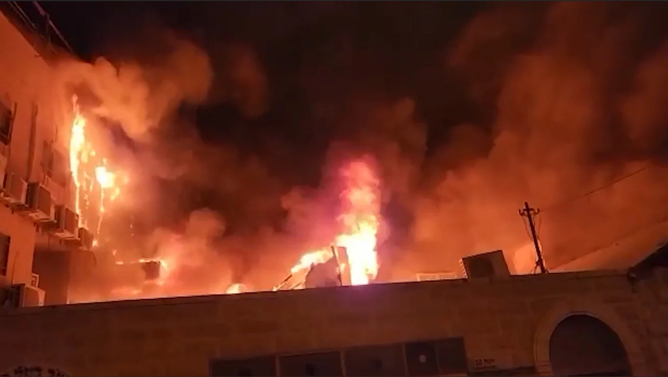 כזכור, במהלך שעות הלילה המאוחרות ביום שישי, פרצה שריפת ענק שהחלה במבנה בית הכנסת, שתקרתו קרסה עקב כך, ובהמשך אף התפשטה למבנה התלמוד תורה הסמוך של חסידי סאטמר מהר"א בשכונת גאולה בירושלים. כוחות כיבוי רבים הוזנקו למקום והצליחו לאחר שעות להשתלט על השריפה ולחלץ חלק מהתפילין ומספרי התורה שעלו בלהבות, בעוד שני ספרי תורה ועשרה זוגות תפילין נשרפו כליל.